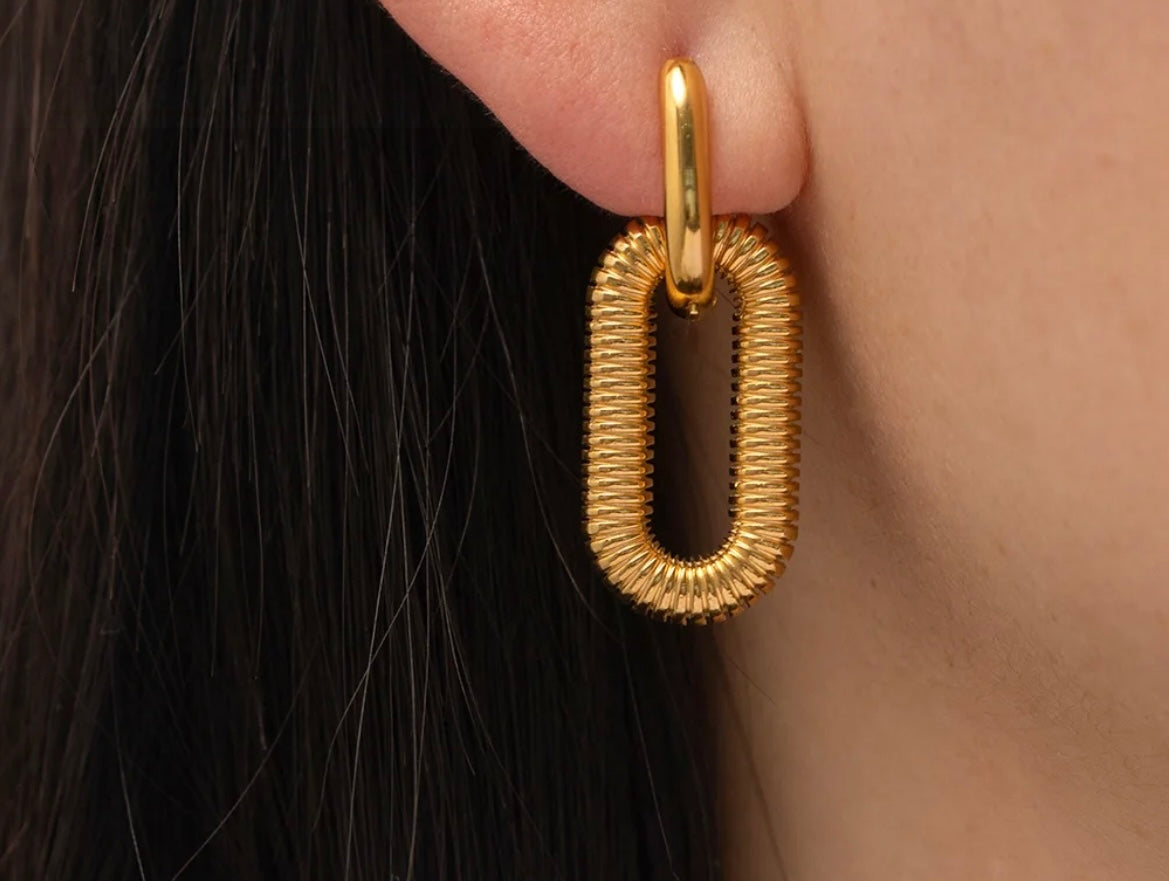 Minimalist Stainless Steel Earrings, Oval Charm Hoop.